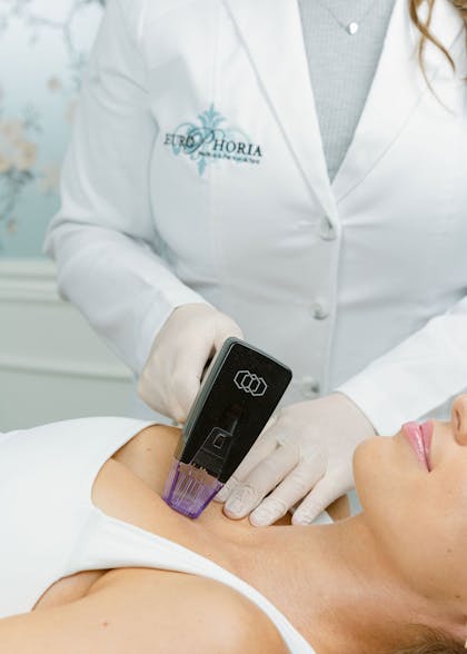 Morpheus8 doesn’t leave behind any scarring; however, most clients need 1-4 days of social downtime after an appointment, as there is sometimes pinpoint bleeding and the skin usually stays red or pink and a bit swollen for that long. You’ll also want to avoid exercise (or anything that causes you to sweat) for two days, because the pores will be very open during this time. You should also avoid certain skin products, swimming, tanning beds, and direct sunlight for 48 hours. Use a gentle moisturizer or healing serum as the skin heals, and absolutely apply a broad-spectrum UVA/UVB sunscreen anytime you will be outdoors. Sun protection is critical. Makeup can be applied two days after your Morpheus8 treatment.